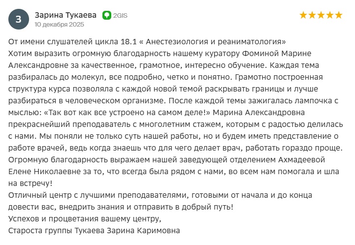 И сегодня староста Зарина Тукаева от имени всей группы оставила свой добрый отзыв о прошедшем обучении. Ознакомиться с ним Вы можете в карточке.