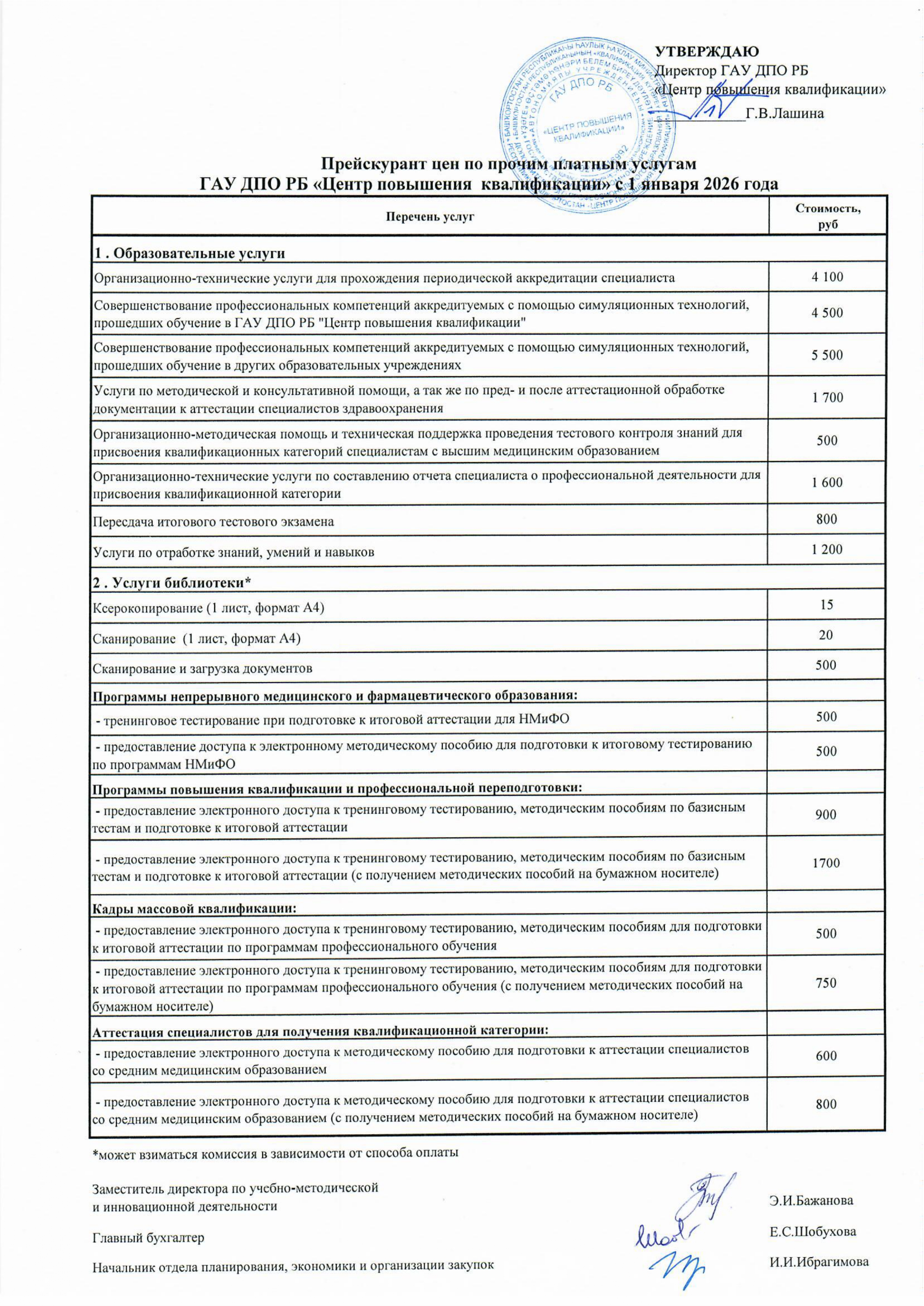 Прейскурант цен по обучению специалистов со средним медицинским и фармацевтическим образованием