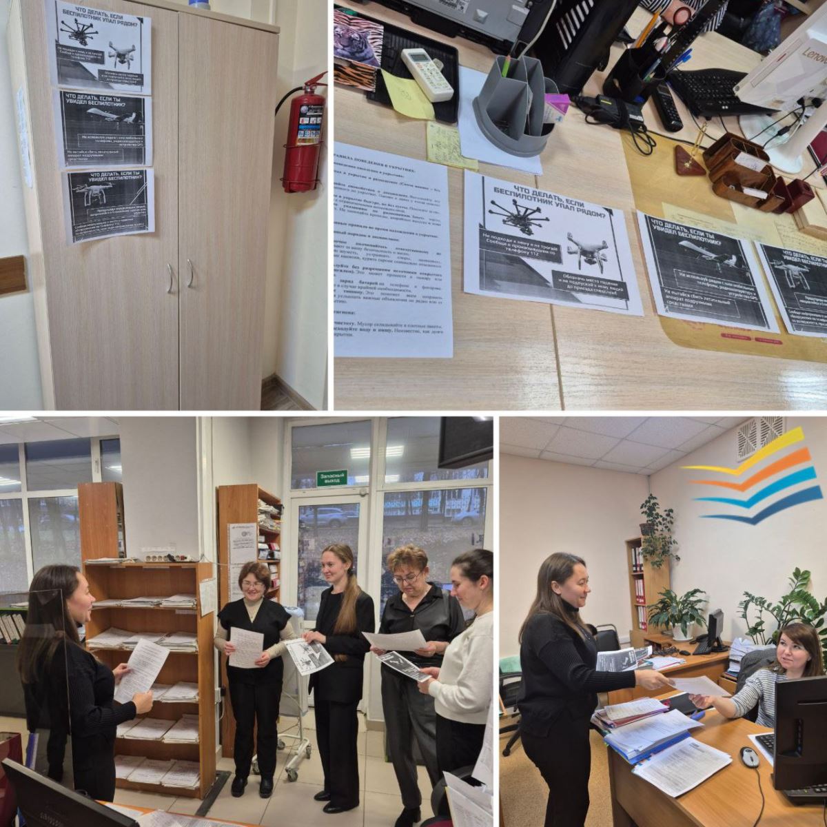 Всем сотрудникам Цента повышения квалификации были розданы специальные памятки о мерах безопасности при атаках беспилотных летательных аппаратов (БПЛА). Коллеги всех структурных подразделений получили подробные рекомендации по защите здоровья и имущества в условиях угрозы нападения беспилотников. Эти инструкции разработаны совместно с региональным управлением МЧС и соответствуют актуальным рекомендациям ведомства.