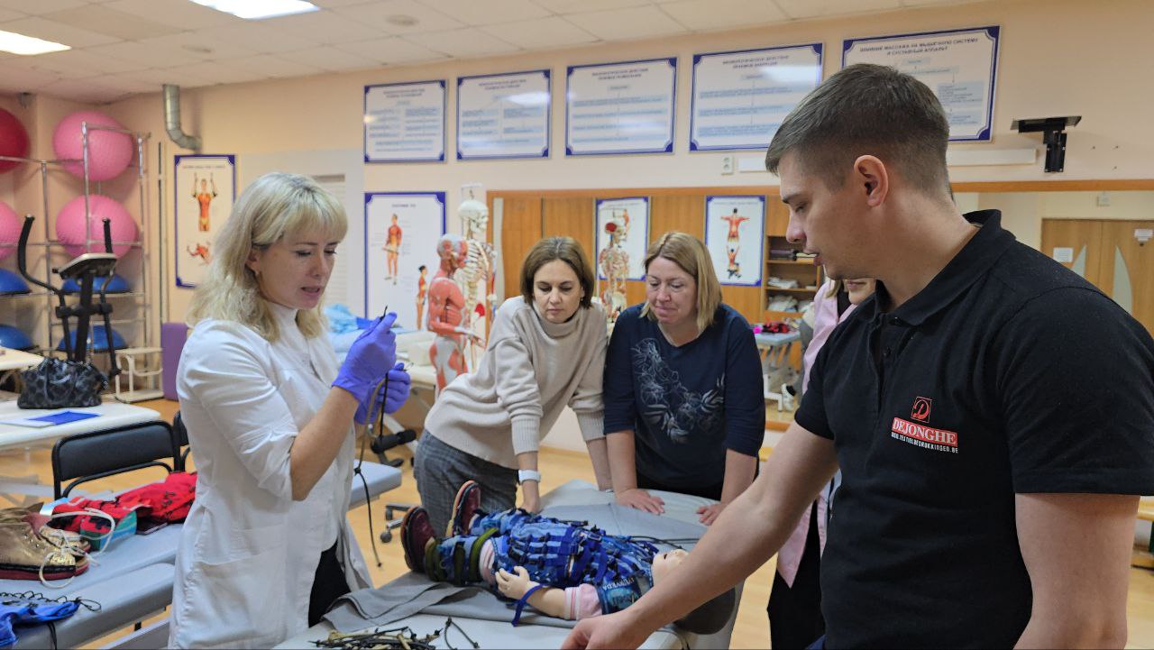 Кроме того, преподаватели Центра для своих коллег провели занятия по оказанию первой помощи пострадавшим с отработкой практических навыков.