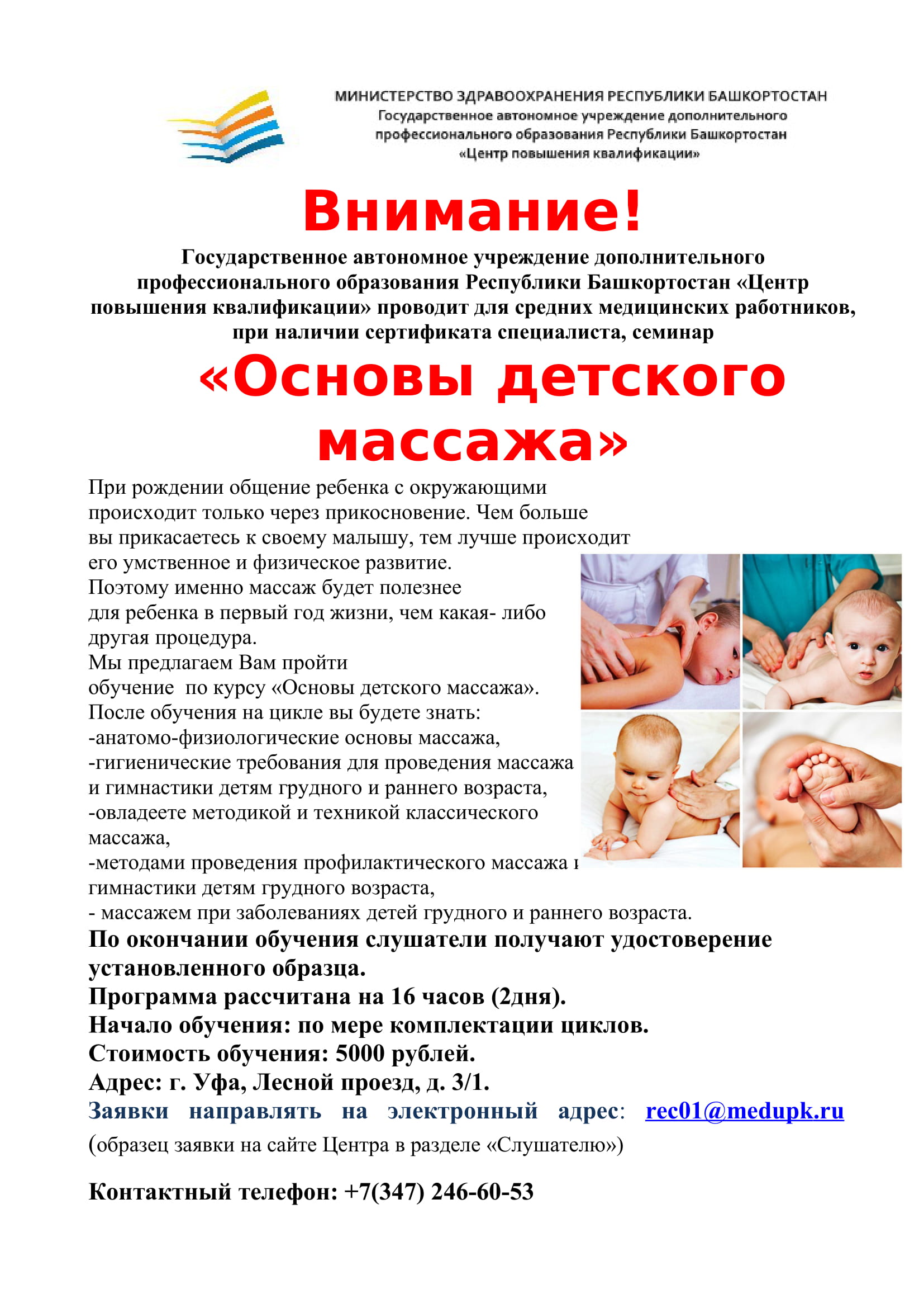 02.07.2021 | Администратор ![]() ![]() ![]() ![]() ![]() 1-2 июля 2021 года на базе ГАУ ДПО РБ «Центр повышения квалификации» успешно прошла онлайн Межрегиональная конференция «Неотложная и экстренная помощь в работе фельдшера ПМСП», участие в которой приняли более 500 специалистов со средним медицинским профессиональным образованием. 02.07.2021 | Администратор Уважаемые коллеги! 23.06.2021 | Администратор