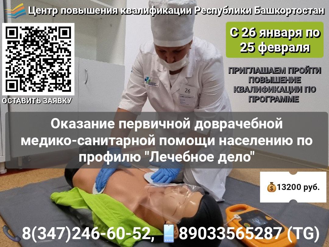 С 26.01.2026 г. по 25.02.2026 г. Центр повышения квалификации предлагает пройти повышение квалификации по актуальной программе: «Оказание первичной доврачебной медико-санитарной помощи населению по профилю «Лечебное дело».