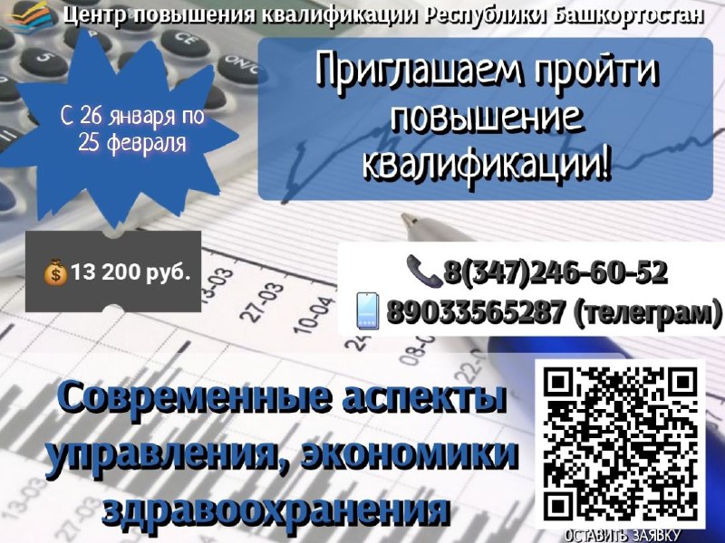 С 26 января по 25 февраля Центр повышения квалификации предлагает своим слушателям пройти повышение квалификации по актуальной и востребованной программе «Современные аспекты управления, экономики здравоохранения».