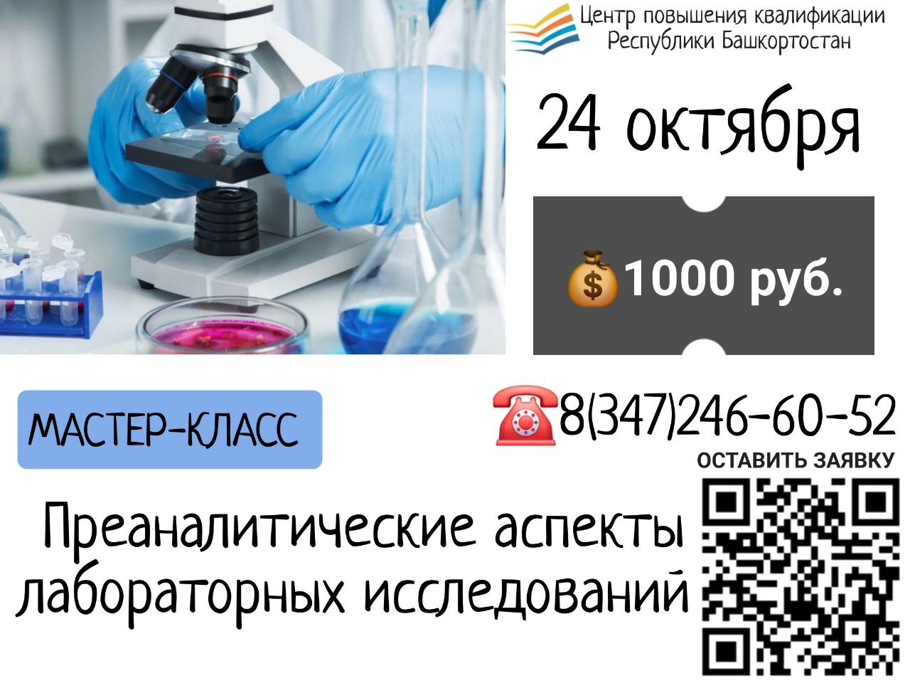24 октября приглашаем вас на Мастер-класс «Преаналитические аспекты лабораторных исследований».