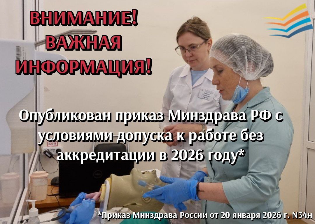 Опубликован приказ Минздрава России № 34н от 20 января 2026 года с условиями допуска к медицинской деятельности без аккредитации специалиста в 2026 году. Документ вступил в силу сегодня, 27 января.