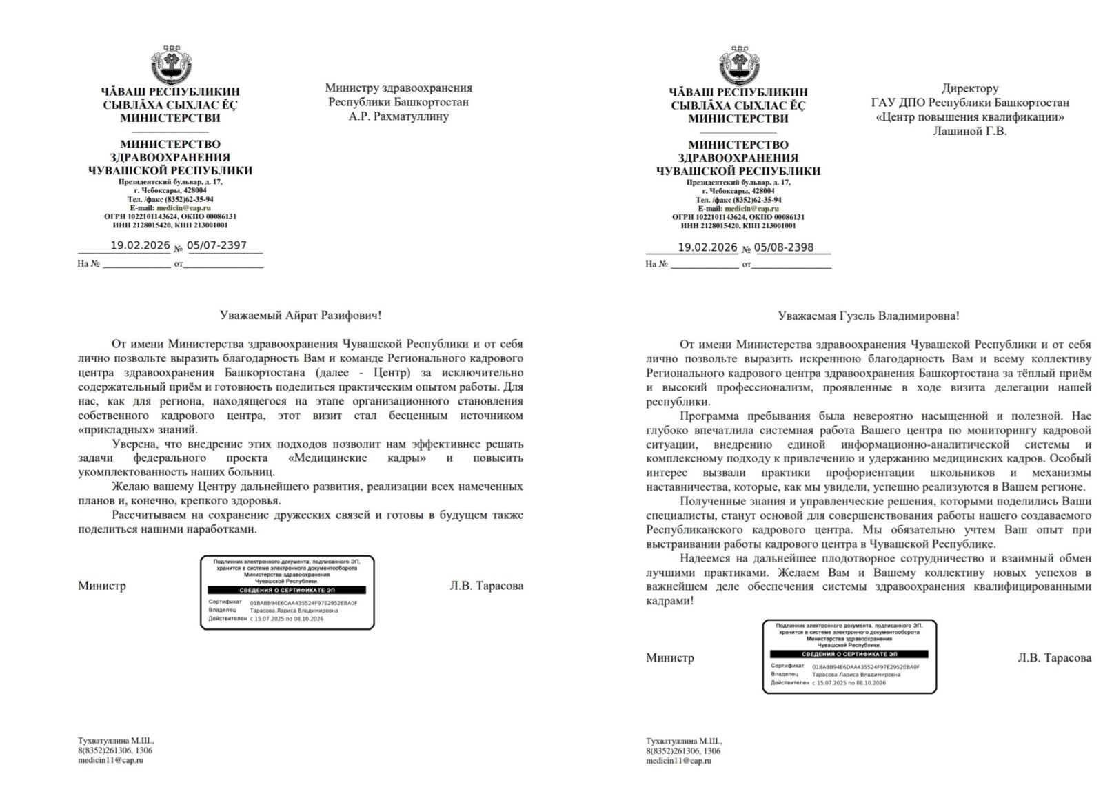 Региональный кадровый центр Республики Башкортостан (далее - Центр) получил высокую оценку от коллег из Чувашии. Делегация из соседней республики, посетившая Башкортостан в феврале, выразила искреннюю благодарность за ценные практические рекомендации и полезные методики, полученные в ходе визита.