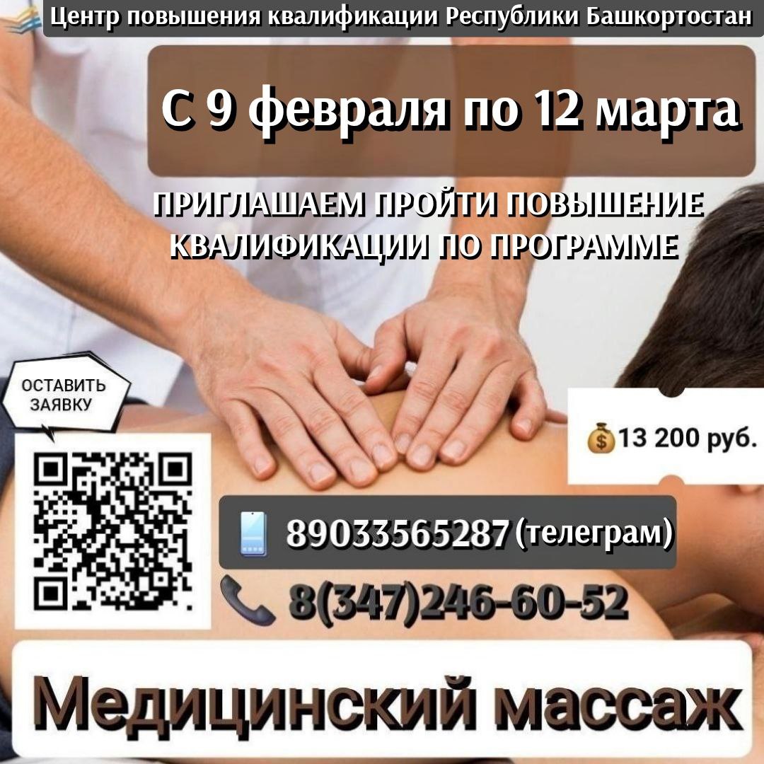 С 9 февраля по 12 марта 2026 года Центр повышения квалификации предлагает своим слушателям пройти повышение квалификации по актуальной и востребованной программе «Медицинский массаж».