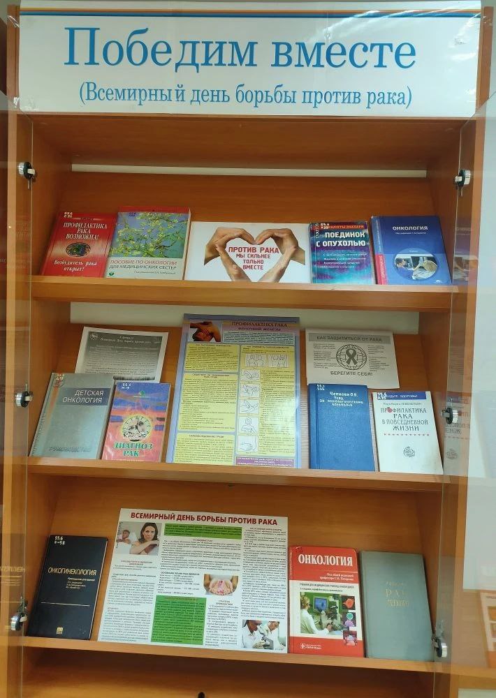 Эти и другие важные вопросы находят ответы на книжной выставке «Победим вместе», оформленной в научной медицинской библиотеке Центра повышения квалификации ко Дню борьбы против рака, одной из самых серьезных болезней современности. Особое внимание уделено детской онкологии, тема которой становится всё более актуальной. Привлечение внимания к проблемам онкологических заболеваний способствует улучшению качества медицинской помощи и повышению уровня здоровья населения.