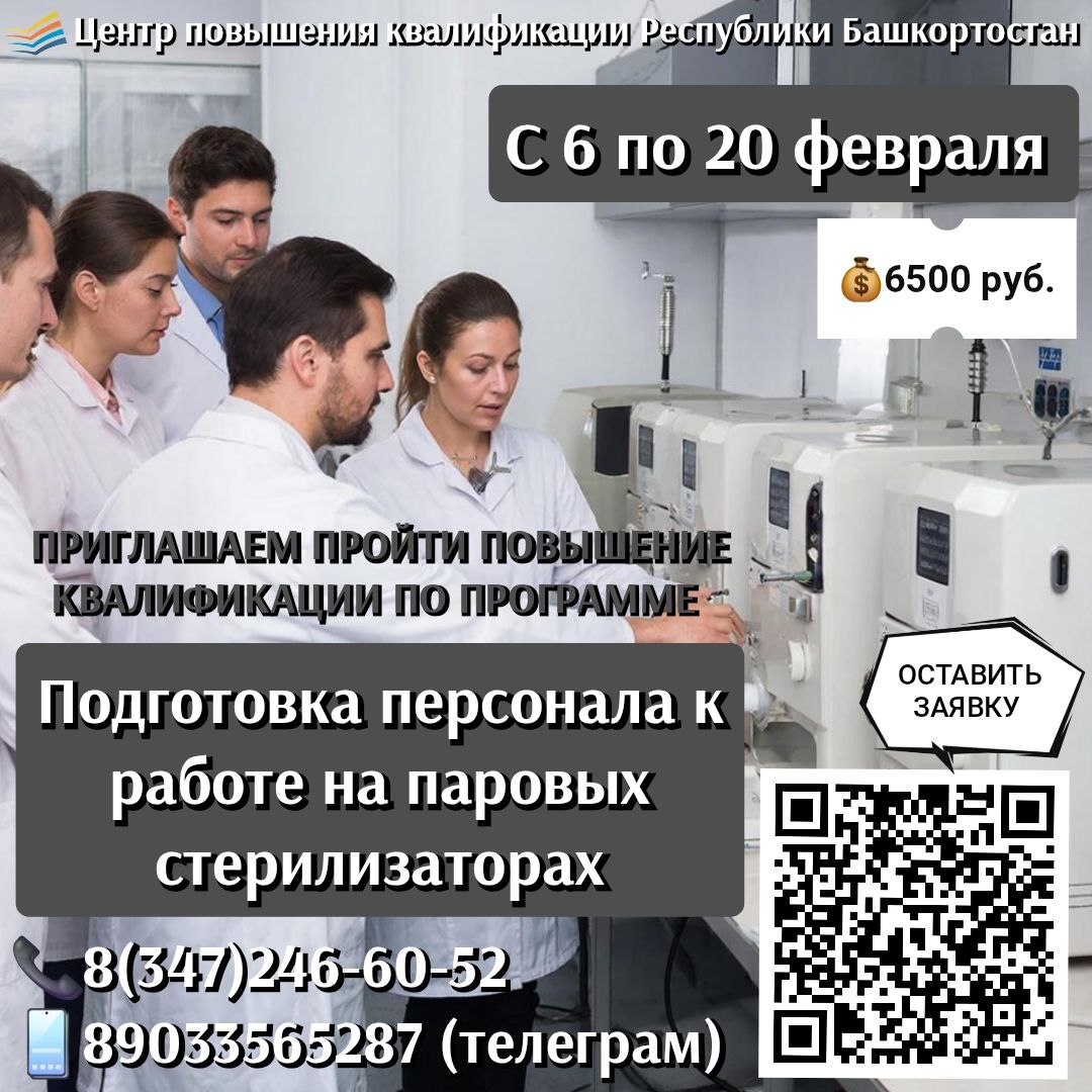 С 6 по 20 февраля 2026 года Центр повышения квалификации приглашает всех желающих пройти повышение квалификации по программе «Подготовка персонала к работе на паровых стерилизаторах».